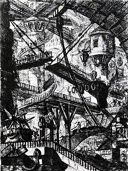 ジョヴァンニ・バッティスタ・ピラネージ(Giovanni Battista Piranesi 1,720~1,778 伊)は18世紀の幻想的な銅版画家である。